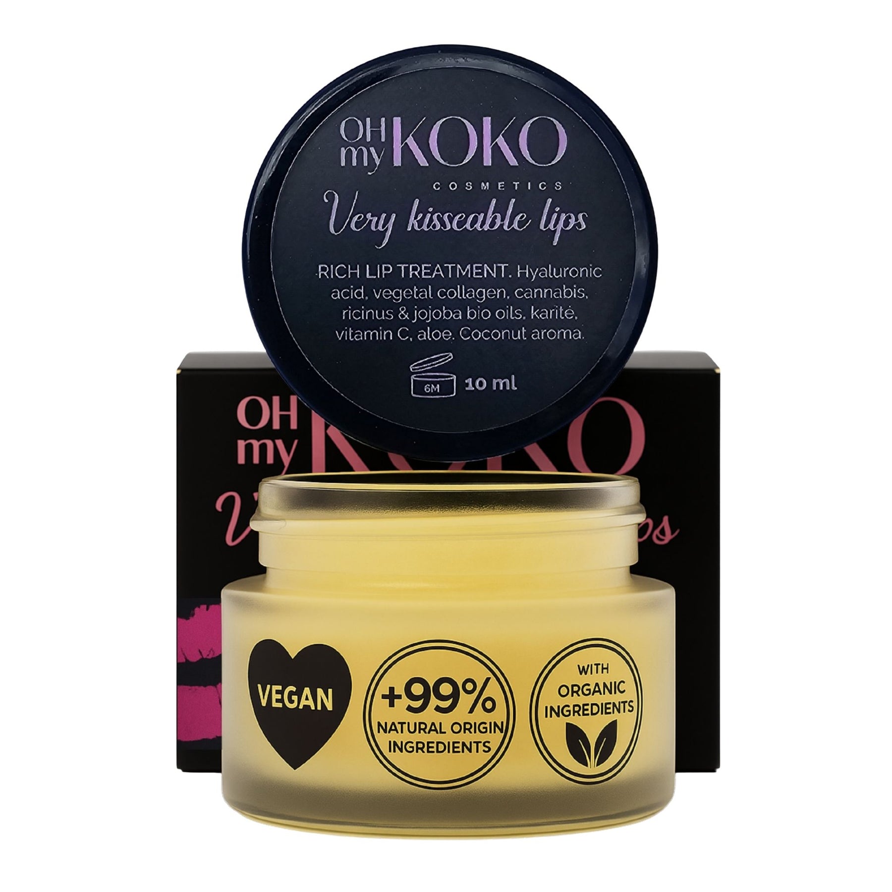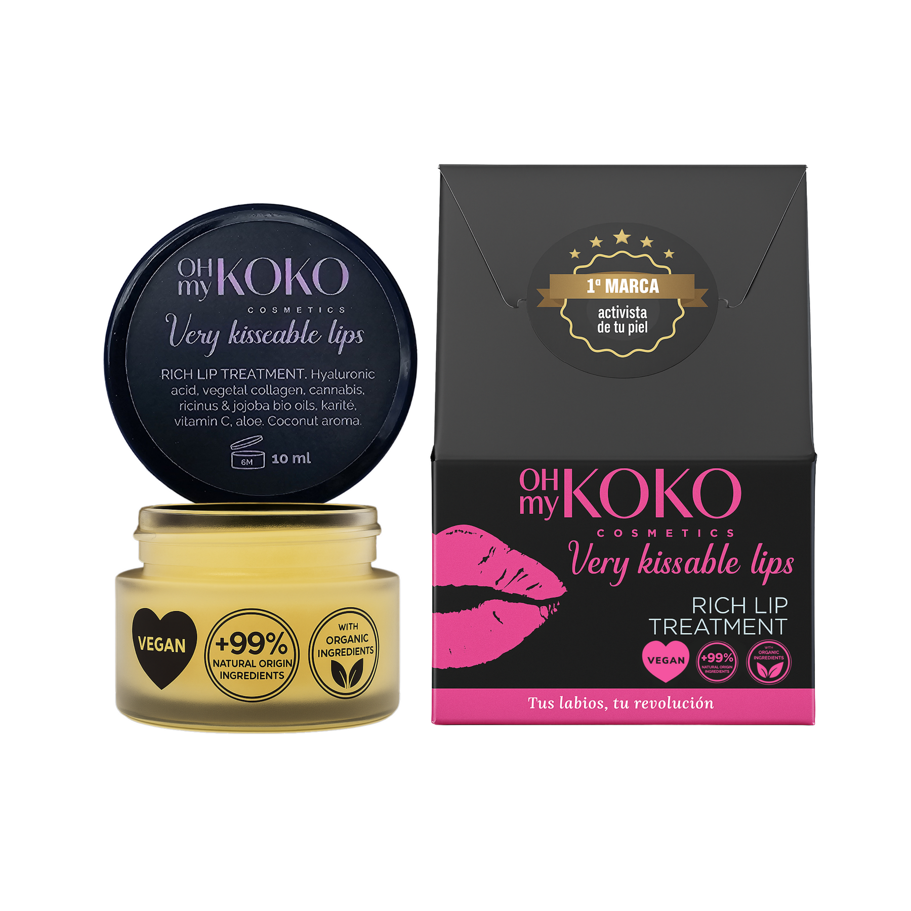 Very Kissable Lips de OhMyKoko no es un cacao cualquiera: es un sérum labial sólido con textura de bálsamo, diseñado para transformar la salud y apariencia de tus labios desde la primera aplicación. Gracias a su fórmula ultraconcentrada con ácido hialurónico, colágeno vegetal y antioxidantes, hidrata intensamente, rellena y suaviza visiblemente. Repara labios secos o agrietados, mejora su elasticidad y aporta volumen natural, sin dejar sensación pegajosa. Ideal también como tratamiento de noche.