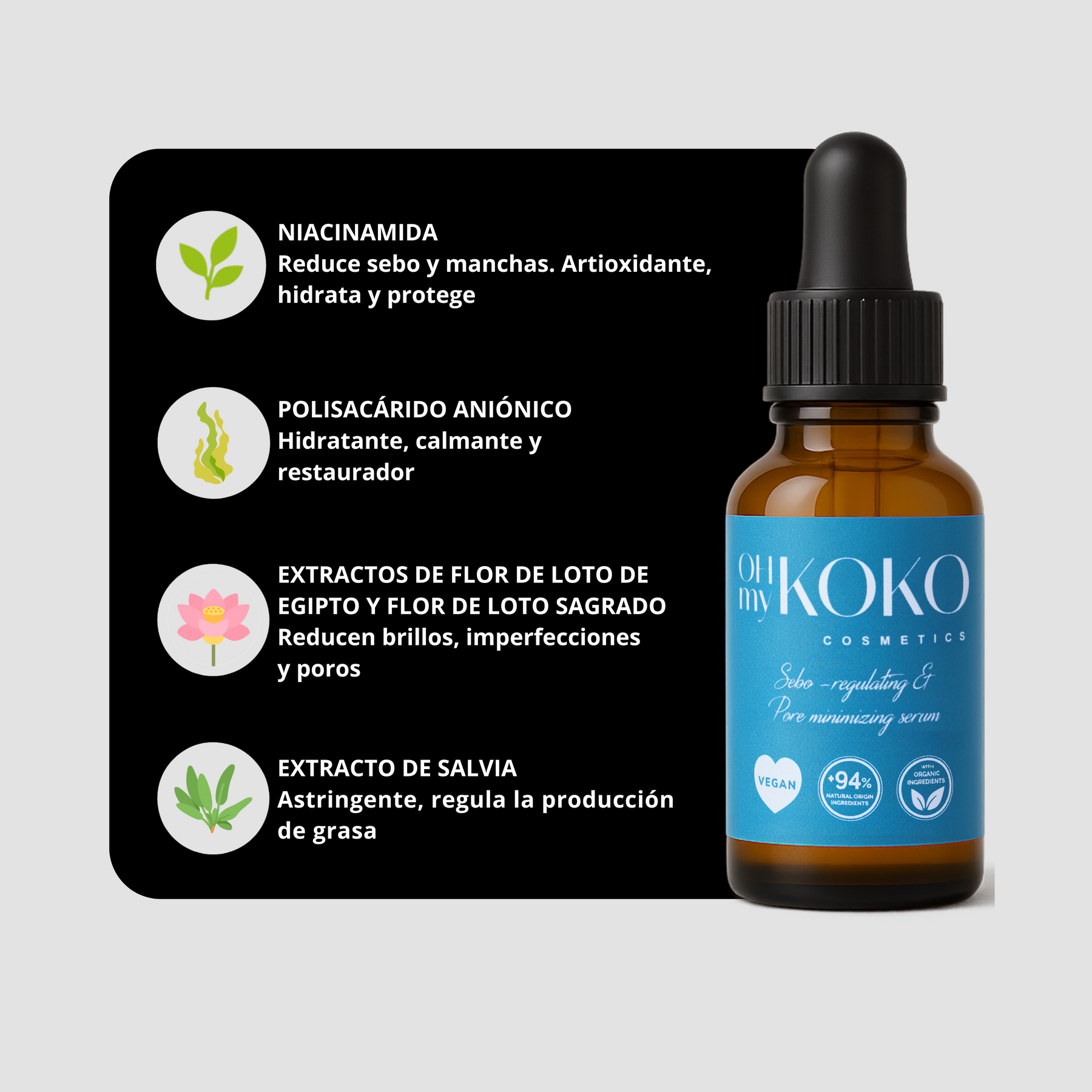 Sérum facial natural con niacinamida para piel grasa, mixta, sensible o con rosácea. Hidrata, calma rojeces y reduce arrugas sin obstruir poros. Día y noche. Vegano y sin tóxicos.